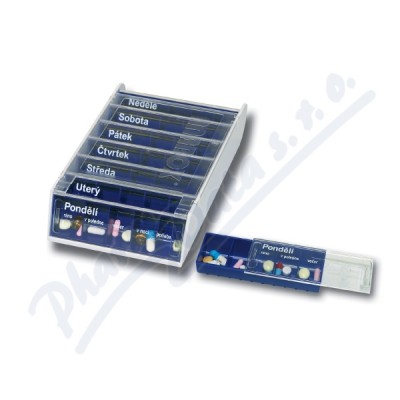 Praktický a moderní dávkovač léků na celý týden. Přihrádky na jednotlivé dny lze od sebe oddělit. Jsou rozděleny na 5 políček, ranní je o něco větší než ostatní. Kvalitní materiál zabezpečí ochranu před světlem i UV paprsky. Snadná manipulace.