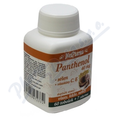 Kyselina pantothenová, resp. D-panthenol, patří do skupiny B vitaminů rozpustných ve vodě. Vyskytuje se ve všech tkáních, obvykle je vázaná ve formě tzv. koenzymu A. Přípravek je obohacen o selen, vitaminy C a E.