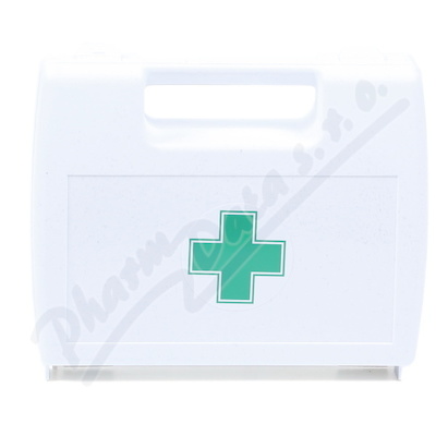 Plastový kufřík s držadlem, určen pro zdravotnické prostředky a léky jako obal lékárničky. Rozměr: 25x20x8 cm.