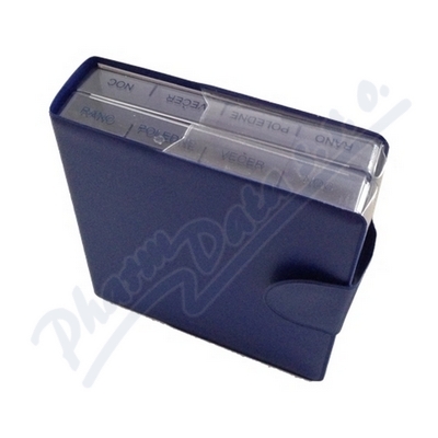 Týdenní dávkovač MAXI na léky s vyjímatelnými denními boxy, pojmenovanými jednotlivými dny v týdnu. Každý box je rozdělen na 4 části: Ráno, poledne, večer a noc. Dávkovač je opatřen praktickým ochranným omyvatelným pouzdrem.