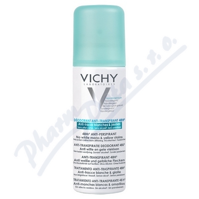 VICHY DEO ANTI TRACES, 125ml, NOVINKA. Deodorant antiperspirant sprej proti nadměrnému pocení se 48-hodinovým účinkem bez zanechání bílých stop a žlutých skvrn na oblečení.