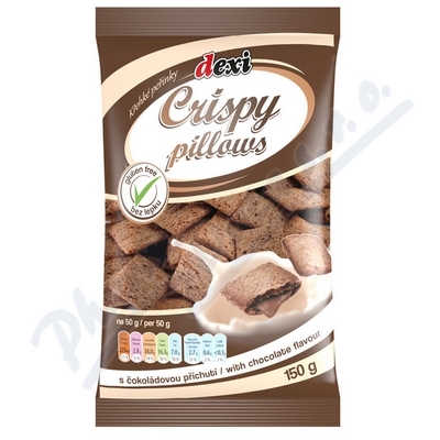 Křehké peřinky s náplní s čokoládovou příchutí - bez lepku. Trvanlivé pečivo - extrudovaný výrobek, vhodný pro bezlepkovou dietu.