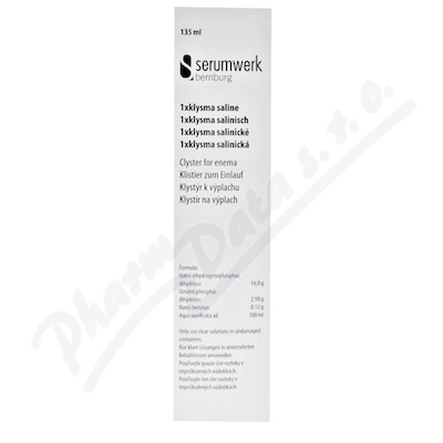 Klystýr k výplachu. K rychlému vyprázdnění stolice z dolní části střeva a konečníku, např. před operacemi, rentgenovými vyšetřeními, kolonoskopiemi a před porody.