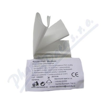 Rouška PVC 20x 20cm slouží k ošetření otevřeného poranění hrudníku - první pomoc při otevřeném pneumothoraxu.