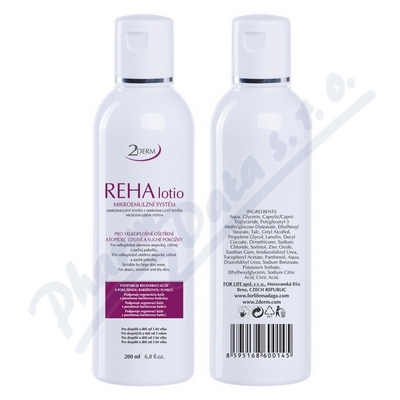 2DERM REHA lotio - Mikroemulzní systém pro velkoplošné ošetření atopické, citlivé a suché pokožky. Pro dospělé a děti od 3 let věku.