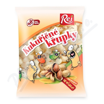 Kukuřičné křupky arašídové obsahují 20% jemně mletých pražených arašídů, méně tuku a jsou bezlepkové. Extrudovaný výrobek.