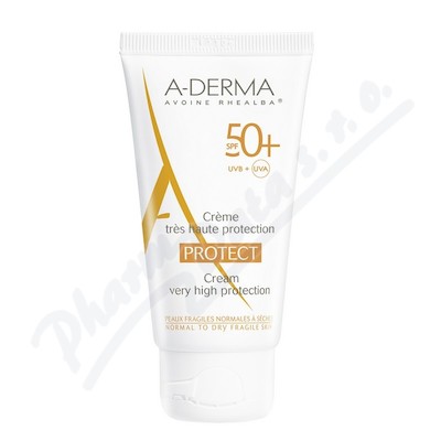 A-DERMA Protect Krém SPF50+ 40ml. Velmi vysoká ochrana. Voděodolný. Na normální až suchou křehkou fragilní kůži.