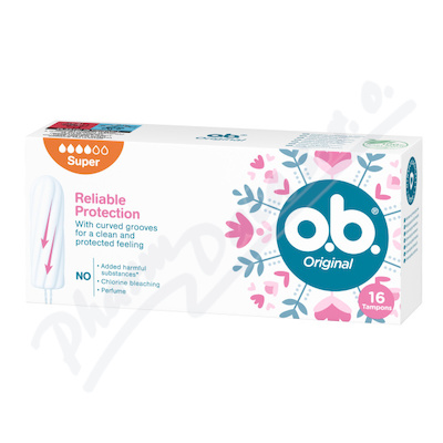 o.b. Original Super tampony, pro silnou menstruaci, se stočenými drážkami a technologií StayDry, spolehlivá ochrana a pocit čistoty 16 ks.