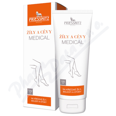 Priessnitz Žíly a cévy MEDICAL obsahuje escin a flavonoidy, jež jsou prověřené přírodní látky s šetrnými příznivými účinky při péči o nohy bez křečových žil, otoků a bolesti.
