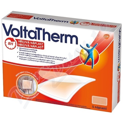 Hřejivá náplast VoltaTherm poskytuje 8 hodin tepla pro prodlouženou úlevu od bolesti až na 24 hodin (účinek pozorovaný při akutní nespecifické bolesti v dolní časti zad během a po 2 dnech používaní).