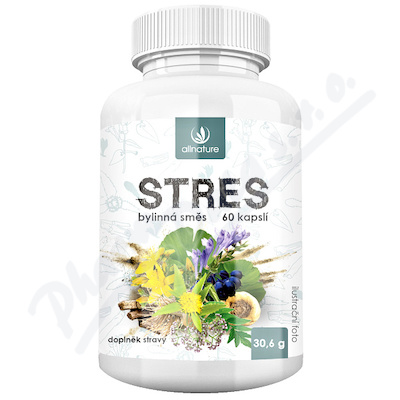 Bylinný extrakt Stres napomáhá k celkovému uklidnění organismu. Díky třezalce, kozlíku, šišáku a dalším léčivým bylinkám je tělo více odolné vůči nemocem a náporu stresu.