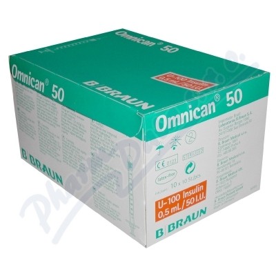 OMNICAN 50-50I.U./0,5ML 30GX12 (100), Inzulinová stříkačka s integrovanou jehlou - inzulin 0,5ml /0,30x12 mm.
