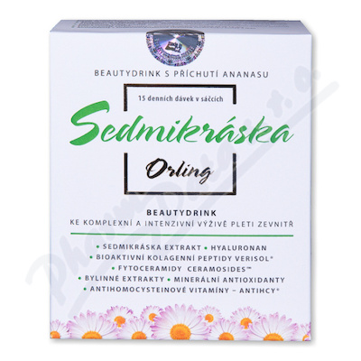 SEDMIKRÁSKA Orling je lahodný nápoj ke komplexní výživě pleti zevnitř. Obsahuje 7 látek pro 7x krásnější, mladou a pevnou pleť. Stimuluje syntézu kolagenu v pokožce, zvyšuje pružnost, redukuje vrásky. Obsahuje sedmikrásku, kolageny, hyaluronan, ceramidy.