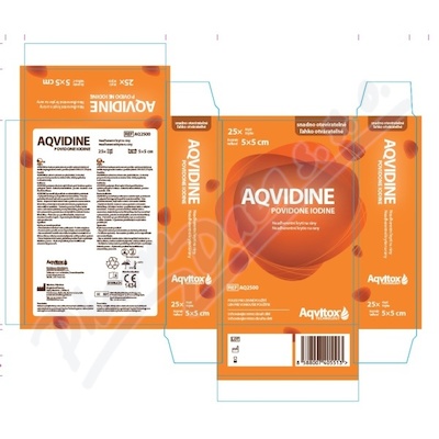 Aqvidine je krytí pro jednorázové použití z pletené viskózové textilie impregnované mastí s povidon jódem 10% U.S.P. (1% jód) v neaktivní bázi polyethylenglykolu a purifikované vody.