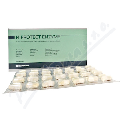 Doplněk stravy obsahující směs enzymů, extrakt ostropestřce mariánského a Resveratol, bacillus coagulans, selen, koenzym Q10 a vitamíny C, B1, B2, B6.