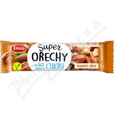 Tyčinka super ořechy pekan je arašídová tyčinka s mandlemi a pekanovými ořechy. Tyčinka je bez lepku a vhodná pro vegany.