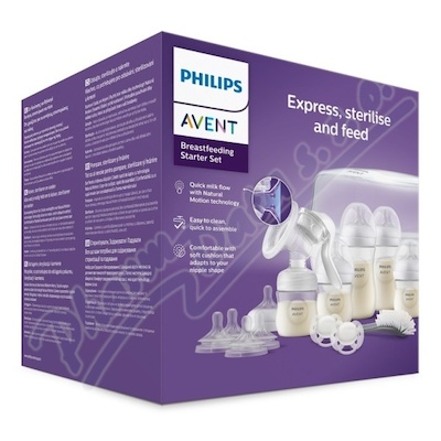 Sada pro kojení ideální pro maminky, které hledají pomocníka při odsávání, krmení i čištění lahví. Zahrnuje řadu příslušenství: Manuální odsávačku mateřského mléka, sterilizátor, dudlíky a lahve.