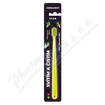 Zubní kartáčky STAR jsou vyrobené ze svítícího materiálu, který baví všechny děti. Kartáčky mají zmenšenou hlavičku stvořenou pro dětský chrup už od prvního zoubku. Velmi jemná vlákna zajistí šetrné čištění.