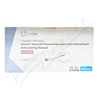 Jednorázový artikulační zásobník pro elektrický endoskopický lineární katr IntoCareTM. Na každé straně od středové linie zásobníku jsou tři řady sponek.