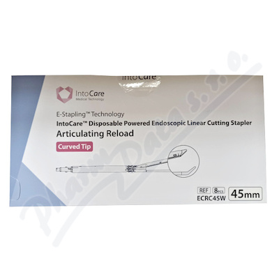 Jednorázový artikulační zásobník pro elektrický endoskopický lineární katr IntoCareTM. Na každé straně od středové linie zásobníku jsou tři řady sponek.